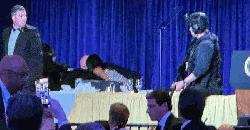 যুক্তরাষ্ট্রের প্রেসিডেন্ট ডোনাল্ড ট্রাম্প এবং ফার্স্ট লেডি মেলানিয়া ট্রাম্প-কে শনিবার হোয়াইট হাউস করেসপন্ডেন্টস ডিনার অনুষ্ঠান থেকে ...