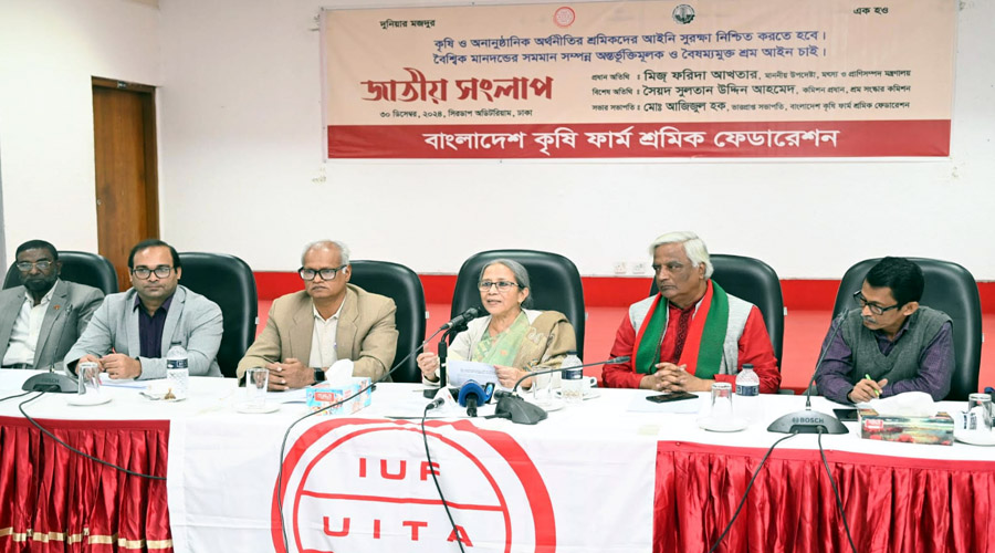 আজ সকালে সিরডাপ অডিটোরিয়ামে বাংলাদেশ কৃষি ফার্ম শ্রমিক ফেডারেশন আয়োজিত "বৈশ্বিক মানদণ্ডের সমমান সম্পন্ন অন্তর্ভুক্তিমূলক শ্রম আইন এবং কৃষি ও অনানুষ্ঠানিক অর্থনীতির শ্রমিকদের আইনি স্বীকৃতি" বিষয়ক জাতীয় সংলাপে প্রধান অতিথির বক্তৃতায় তিনি এসব কথা বলেন।
