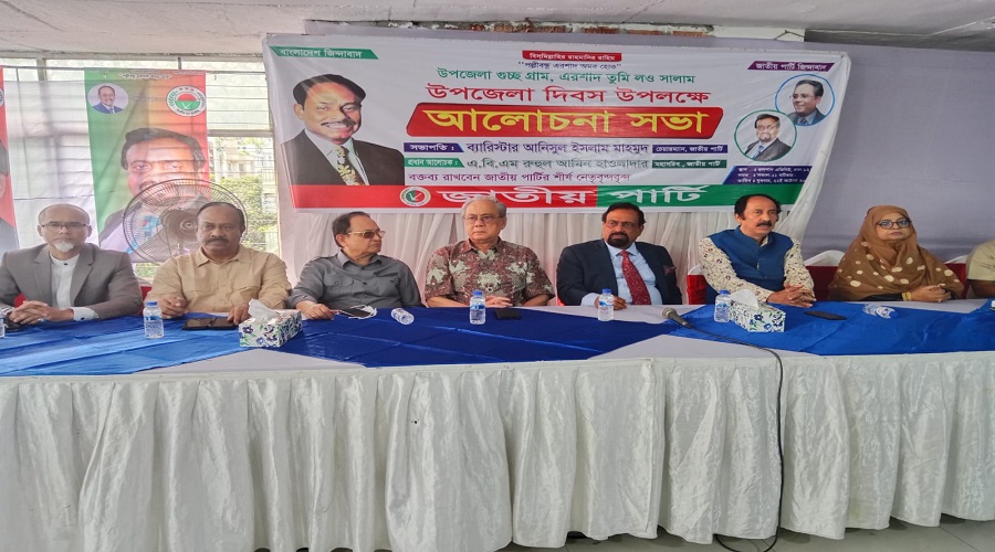জাতীয় পার্টির চেয়ারম্যান ব্যারিস্টার আনিসুল ইসলাম মাহমুদ এর সভাপতিত্বে উপজেলা দিবস উপলক্ষে আলোচনা সভায় বক্তব্য রাখেন-পার্টির মহাসচিব এবিএম রুহুল আমিন হাওলাদার, সিনিয়র কো-চেয়ারম্যান এডভোকেট কাজী ফিরোজ রশিদ, নির্বাহী চেয়ারম্যান এডভোকেট মুজিবুল হক চুন্নু, কো-চেয়ারম্যান সৈয়দ আবু হোসেন বাবলা, প্রেসিডিয়াম সদস্য- বীরমুক্তিযোদ্ধা অধ্যাপক নূরুল ইসলাম মিলন, মোবারক হোসেন আজাদ।