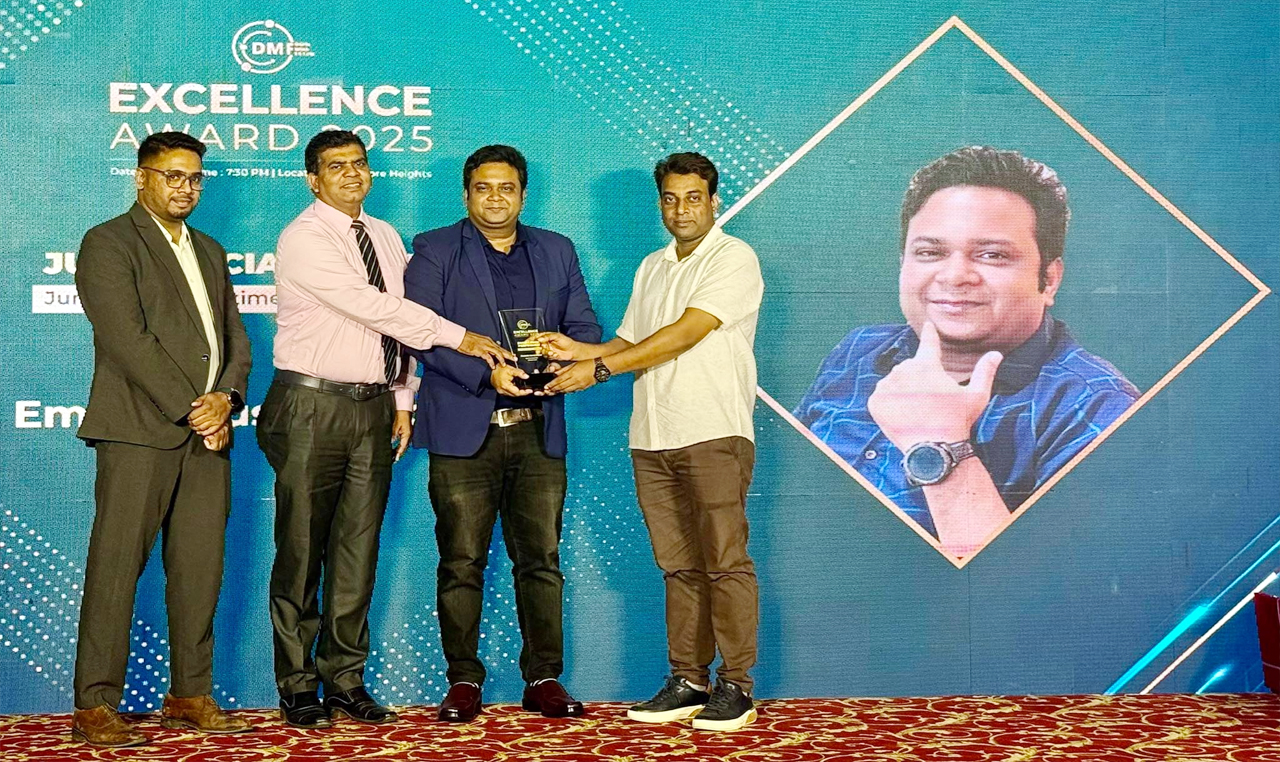 ২৫ অক্টোবর রাজধানীর গুলশানের একটি পাঁচতারকা হোটেলে “ডিজিটাল মিডিয়া এক্সিলেন্স অ্যাওয়ার্ড ২০২৫” ইমরুল কাওসার ইমনের হাতে তুলে দেন আয়োজকবৃন্দ।