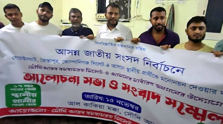বক্তারা বলেন, মহান জাতীয় সংসদ নির্বাচনে সিলেট -৪ আসনের স্থানীয় জনপ্রতিনিধিরা প্রতিনিধিত্ব না করায় দেশের অন্যান্য উপজেলা থেকে এখনো হাজারগুন পিছিয়ে রয়েছে দেশের সীমান্তবর্তী জনপদ গোয়াইনঘাট, কোম্পানীগঞ্জ ও জৈন্তাপুর উপজেলা। শিক্ষা, যোগাযোগ, স্বাস্থ্য সেবার অনুন্নয়ন সহ সীমান্তবর্তী এ জনপদে লক্ষ লক্ষ মানুষ বেকারত্বের অভিশাপে দিনাতিপাত করছেন। প্রাকৃতিক সম্পদের গর্ভধারিণী এ জনপদ পর্যটনের সম্ভাবনাময় অঞ্চল থাকাসত্ত্বেও স্থানীয় জনপ্রতিনিধির অভাবে পর্যটনের বিকাশ হচ্ছেনা। এ জনপদে ভোলাগঞ্জ, জাফলং, উৎমা ছড়া,বিছনাকান্দি, ও শ্রীপুর পাথর কোয়ারি হওয়ায় বরাবরই জাতীয় সংসদ নির্বাচনে শকুনের নজর পড়ে। এবারের নির্বাচনে স্থানীয় প্রার্থী না দিলে তিন উপজেলার বহির্বিশ্বে অবস্থানরত রেমিট্যান্স যোদ্ধারা ও তাদের পরিবার পরিজন ঐক্যবদ্ধ ভাবে ভোট বর্জন করবে বলে জানা গেছে। জাতীয় সংসদ নির্বাচনে ভোট দেওয়ার সুযোগ হলেও বহিরাগত প্রার্থীর কারণে হয়তো আবার গোয়াইনঘাট, কোম্পানীগঞ্জ ও জৈন্তাপুর উপজেলাবাসী ভোট দেওয়া থেকে বঞ্চিত হবেন। বক্তারা আরও বলেন বিএনপিকে সিলেট -৪ আসন পেতে হলে স্থানীয় নেতাদের মধ্য থেকে দলের একজন জনপ্রিয় মুখকে বিএনপির দলীয় মনোনয়ন দিতে হবে , যিনি তৃণমূল পর্যায়ে বিএনপি ও সহযোগী সংগঠনকে শক্তিশালী গড়ে তুলেছেন। তাঁর নেতৃত্বে সিলেট -৪ আসন বিএনপি নতুন উদ্যম ও ঐক্য ফিরে পেয়েছে। শনিবার (১৫ নভেম্বর) বিকাল ৩ টায় সৌদি আরবের মক্কা নগরীর কাকিয়া এলাকায় একটি অভিজাত হোটেলে সিলেট- ৪(গোয়াইনঘাট কোম্পানীগঞ্জ ও জৈন্তাপুরের) সাধারন প্রবাসীদের উদ্যোগে অনুষ্ঠিত আলোচনা সভায় সভাপতিত্ব করেন বিশিষ্ট ব্যবসায়ী ফয়সল আহমদ। সৌদি প্রবাসী আলী হায়দার চৌধুরীর পরিচালনায় আলোচনা সভায় বক্তব্য রাখেন, বিশিষ্ট ব্যবসায়ী ও কমিউনিটি নেতা বদরুল ইসলাম, রায়হান পারভেজ, কাওসার আহমদ,সোহেল আহমদ, শাহেদ আহমেদ, ওলিউর রহমান, ইমন মিয়া,জয়নাল আবেদীন ফারুক আহমদ, লোকমান উদ্দিন, হেলাল উদ্দিন প্রমুখ।