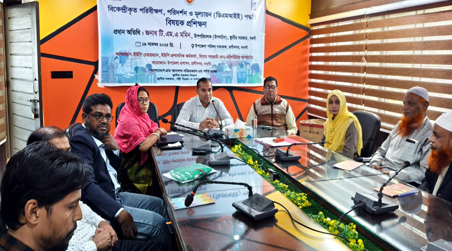 নওগাঁর রাণীনগরে বিকেন্দ্রীকৃত পরিবীক্ষণ, পরিদর্শন ও মূল্যায়ন (ডিএমআইই) পদ্ধতি বিষয়ক দিনব্যাপী প্রশিক্ষণ অনুষ্ঠিত হয়েছে। বুধবার উপজেলা পরিষদ সভা কক্ষে উপজেলা নির্বাহী কর্মকর্তা মো: রাকিবুল হাসান প্রশিক্ষণ কর্মশালার উদ্বোধন করেন। বাংলাদেশ গ্রাম আদালত সক্রিয়করণ ৩য় পর্যায় প্রকল্প স্থানীয় সরকার বিভাগ, স্থানীয় সরকার, পল্লী উন্নয়ন ও সমবায় মন্ত্রণালয়ের সহযোগিতায় সদর উপজেলা প্রশাসন এই প্রশিক্ষণের আয়োজন করে। ইউপি চেয়ারম্যান, ইউপি প্রশাসনিক কর্মকর্তা, হিসাব-কাম-কম্পিউটার অপারেটরগণ প্রশিক্ষণে অংশগ্রহণ করেন। প্রশিক্ষণে গ্রাম আদালত সম্পর্কে এবং ডিএমআইই বিকেন্দ্রীকৃত, পরিবীক্ষণ, পরিদর্শন এবং মূল্যায়ন বিষয়ে এবং মাস শেষে কিভাবে প্রতিবেদন করতে হয় সেই বিষয়ে ডিএমআইই এর মাধ্যমে প্রশিক্ষণ প্রদান করা হয়। এছাড়া প্রশিক্ষণার্থীদের হাতে কলমে রিপোর্ট করার প্রক্রিয়া শেখানো হয়। কর্মশালায় উপস্থিত থেকে বক্তব্য রাখেন জেলা ম্যানেজার সুভাষ সরকার এবং উপজেলা কোঅডিনেটর যবনিকা রাণী। এসময় উপজেলা নির্বাহী কর্মকর্তা বলেন প্রশিক্ষণে প্রাপ্ত জ্ঞান অবশ্যই সকলকে মাঠ পর্যায়ে প্রয়োগ করতে হবে। তবেই সেবা গ্রহিতারা গ্রাম আদালতের সুফল সম্পর্কে জানবেন এবং গ্রাম আদালত বিষয়ে সরকারের গৃহিত পদক্ষেপগুলো শতভাগ বাস্তবায়ন করা সম্ভব হবে।