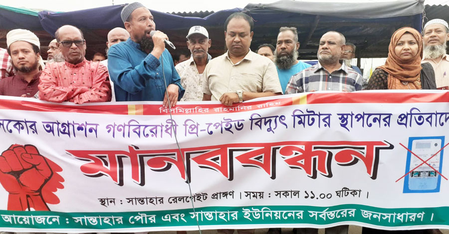 বগুড়ার সান্তাহার রেলগেট এলাকায় Northern Electricity Supply Company Limited (NESCO)- কতৃক প্রি-পেইড বিদ্যুৎ মিটার স্থাপনের প্রতিবাদে মানববন্ধন কর্মসূচি পালিত হয়েছে।